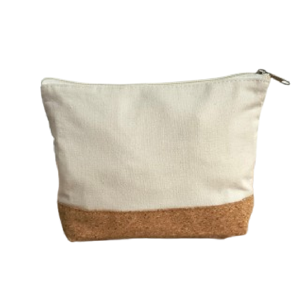 Neceser multiusos. color blanco, con fondo y forro de base de material corcho, 23 de ancho x 15.5 de alto x 7 de base